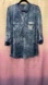 Stylish blue button-up blouse with a textured pattern. Features front pockets and a relaxed fit.