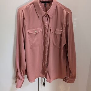 Stylish blue button-up jacket with a sleek design. real leather exterior