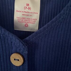 Stylish blue ribbed top with button-up front. Perfect for casual outings.
