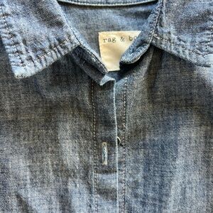 Stylish blue button-up shirt with a classic collar and front pocket. Perfect for casual or formal occasions.