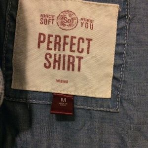 Super soft and comfy button up. Casual. Wrinkled in picture but easy to get wrinkles out. Only worn once.