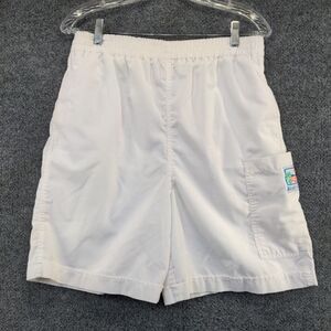 Blue Cabana Men's Shorts White Size M Poly Cotton Blend Pocket Vintage