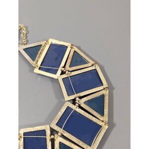 Blue Cabochon Statement Necklace Geometric Bold Gold Tone 18"