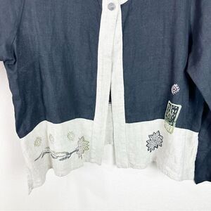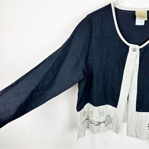 Blue Cactus Linen Black Cardigan Lagenlook Artsy XL