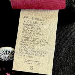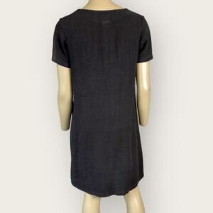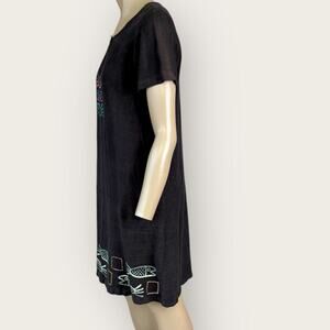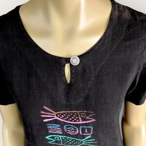 Blue Cactus Vintage 100% Linen Short Sleeve Hand Paint Shift Dress Size PS Black