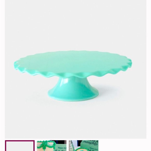 Base screws off and on the top. Brand new in box. Susie cakes Tiffany blue.