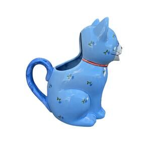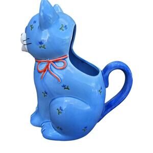 Vintage OTagiri Japan Handcrafted Blue Calico Cat Ceramic Pitcher