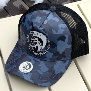 Brand New with Tags. Blue Camo Diesel OTB Trucker Cap with Black Mesh. D logo on back. Black snapback closure. Very nice/good looking cap. One Size Fits Most.