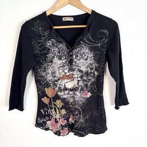 Blue Canyon Embellished Tee Womens Small Dark Fairy Whimsigoth Feminine Paris