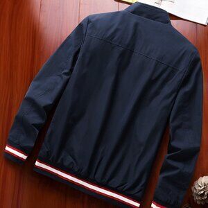 Blue Casual Mens Striped Trim Zip Up Jacket