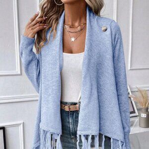 Blue Casual Women's Asymmetrical Long Sleeve Fringe Tassel Sweater Dress