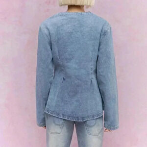 Blue Casual Women's Buttoned Round Collar Long Loose Sleeves Denim Jacket