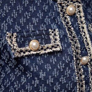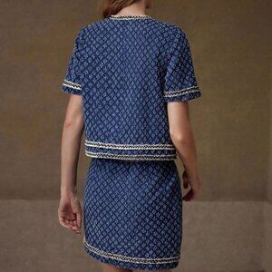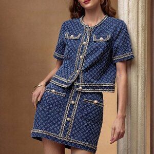 Blue Casual Women's Denim Jacquard Crop Jacket & Skirt set