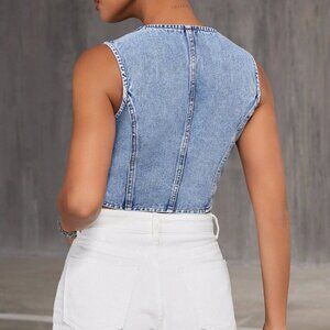 Blue Casual Women's Denim Vest Top