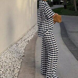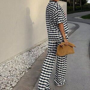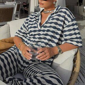 Blue Casual Women's Embellished Top & Pants Set