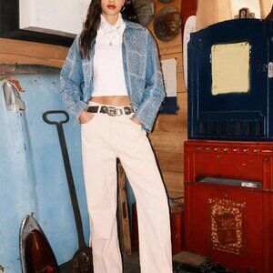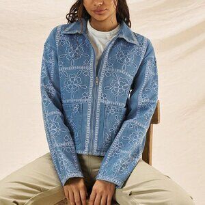 Blue Casual Women's Flower Embroidery Denim Jacket