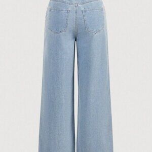 Blue Casual Women's Front Button Pocket Faux Pearl Decor Denim Jeans