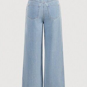 Blue Casual Women's Front Button Pocket Faux Pearl Decor Denim Jeans