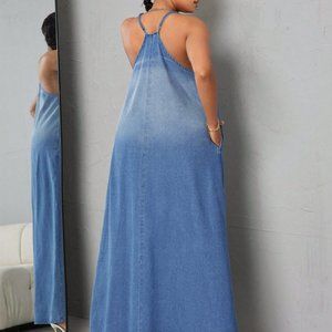 Blue Casual Womens Gradient Denim Cami Dress