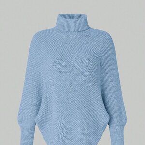 Blue Casual Women's High Neck Batwing Sleeve Sweater
