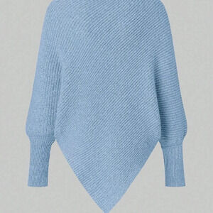 Blue Casual Women's High Neck Batwing Sleeve Sweater