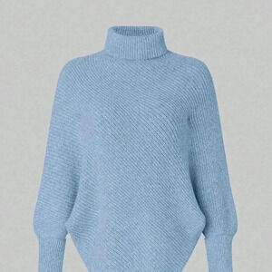 Blue Casual Women's High Neck Batwing Sleeve Sweater