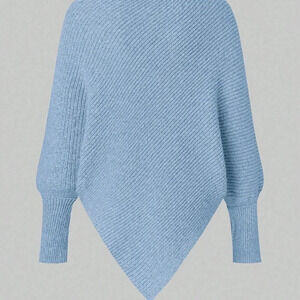 Blue Casual Women's High Neck Batwing Sleeve Sweater