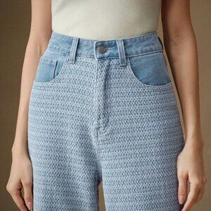 Blue Casual Women's Jacquard Weave Wide Leg Loose Fit Jeans