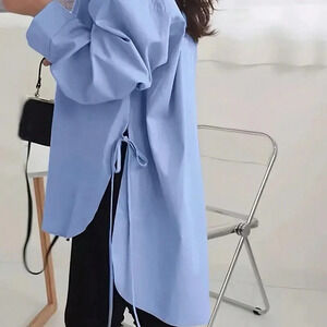 Blue Casual Women's Solid Color Drop Shoulder Long Sleeve Shirt