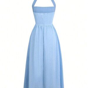 Blue Casual Women's Vacation Hanging Neck Elegant Long Dress