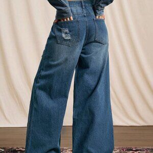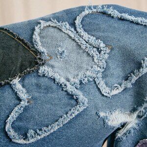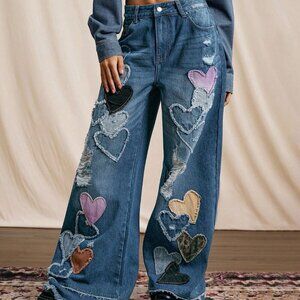 Blue Casual Women's patchwork Heart Pattern Washed Low-Rise Denim Jeans