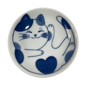 cat plates, ceramic cat plates, Japanese cat dishes, sauce dish, soy sauce plate, trinket dish, jewelry dish, blue and white plate, made in Japan, kawaii kitchen, cat decor, cat kitchenware, collectible plates, blue cat collection, cute kitchen, pottery, small dish, sushi plate, Japanese ceramic, cat lover gift, soy sauce dish, blue cat plates, cat home decor