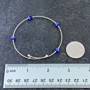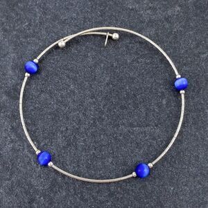 Blue Cat’s Eye Memory Wire Bracelet | Vintage Sterling Silver | 7.5” Adjustable