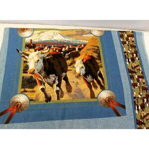 Blue Cattle Drive 5827 Spring Industries Cotton Fabric Western Cowboy 46" Panels