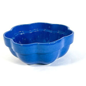 Blue Ceramic Serving Bowl 8.5" Scalloped Edge Unglazed Base Marked P360 490