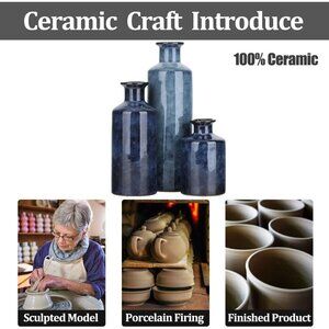 Blue Vases For Decor - Showcase Your Style With This Decorative Blue Ceramic Vase Set Of 3. Create A Space In Your Home With Refined Rustic, Yet Elegant And Effortlessly Beautiful Home Décor Pieces, Perfect For All Seasons And Holidays. Blue Ceramic Vases Have A Delicate Texture And Are Easy To Wash Maintenance Free