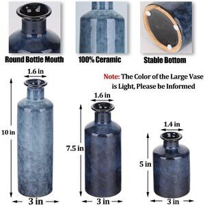 Modern Farmhouse Vases Decor- (Measuring 3"L X 3" W X 10" H; 3"L X 3" W X 7.5"H; 3"L X 3" W X 5"H ) This Decorative Vase Set Can Be Used In Many Different Ways. Blue Decor Vases Design Is So Stunning You Can Use It On Its Own For A Beautiful Statement Piece Or Add In Faux Florals, Stems, Bouquets, And Greenery For A Pop Of Color. Perfect For Your Tabletop, Shelf In A Family Room、Mantel、 Farmhouse、Mantle、Dining Room、Bathroom Decor