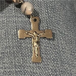 Blue Chalcedony and Silver Bead Rosary with Miraculous Medal and 3D Crucifix