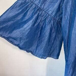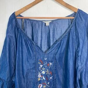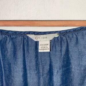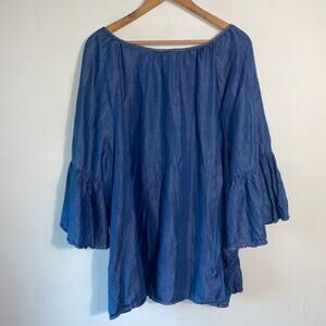 Blue Chambray Embroidered Prairie Top 22/24W Bell Sleeves Boho Fall Cottagecore
