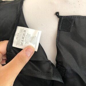 Blue white checkered skirt, seamed with laces, black top with sewn in blouse