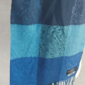 Blue Checkers Paisley Fringe Hem Soft Scarf Wrap Made in Germany in excellent condition.