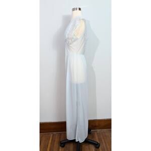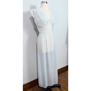 This is such a romantic nightgown! It's mostly sheer, and the lace/chiffon combination on the bodice is stunning. I love the deep V back with the lace border! The only tag says "nylon". No noted flaws!