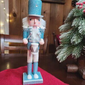 Blue Christmas Nutcracker Soldier Holiday Decor Wooden Statue Xmas Decoration