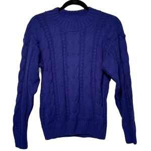 Blue Chunky Cable Knit Sweater Crew Neck Size Small Made in USA