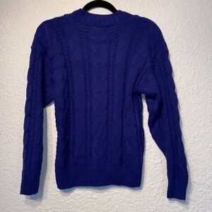 Blue Chunky Cable Knit Sweater Crew Neck Size Small. Made in the USA. Thick braid chunky knit sweater. Really great condition!