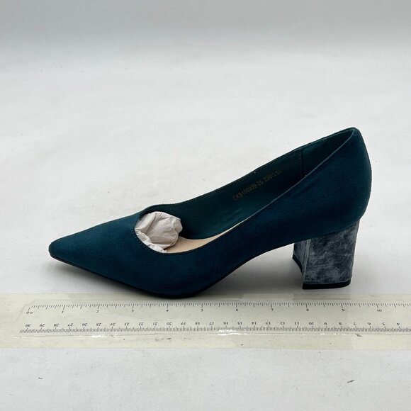 Blue Classic Casual Pumps Pointed Toe Chunky Heels Shoe for Business Occasion