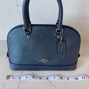 Blue Coach purse in excellent condition. The blue is fun shiny metallic color. It comes with a removable adjustable strap.