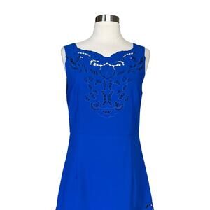 Blue Cocktail Dress Cobalt Sleeveless Laser Cutouts A-Line Round Neck Medium EUC