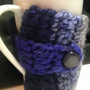 Blue Coffee Mug Cozy Keep It Hot Cover Cup Sleeve Crochet Cozi Tea Drink NWT