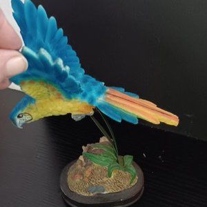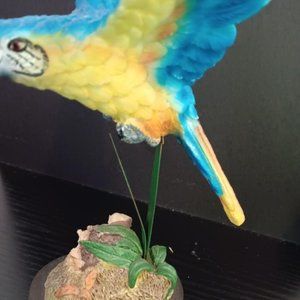 Blue Colored Bird on a Spring Like Stem. Moves back & Forth. Excellent Condition. Sits on a base. I think it is made from resin. Measures 8x5 inches. Great for any bird lover.